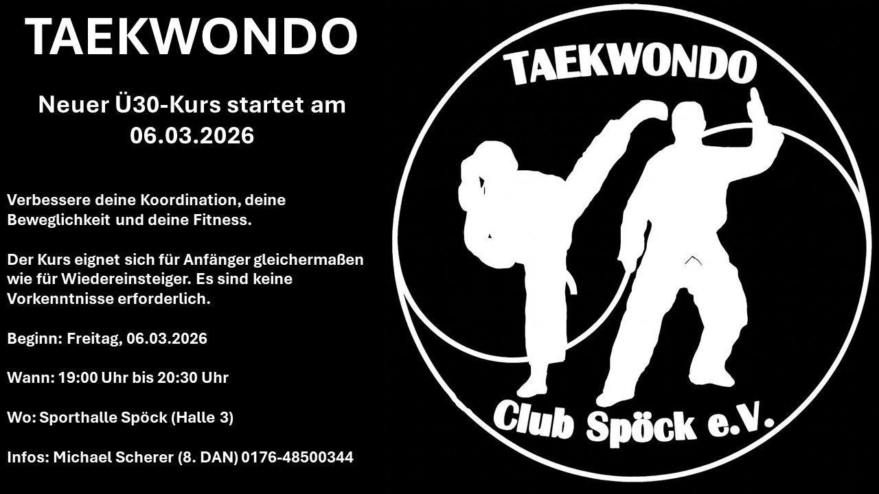 Der Taekwondo Club Spöck startet am Freitag, den 06.03.2026 einen Kurs, speziell für Erwachsene.